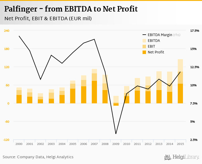 Palfinger made a net profit of EUR 64.4 mil with revenues of EUR 1,230 mil in 2015, up by 68.7% and up by 15.7%, respectively, compared to the previous year. This translates into a net margin of 5.23%.