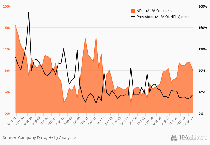Provision coverage amounted to 34.4% at the end of 2019-12-31, up from 30.1% compared to a year earlier.