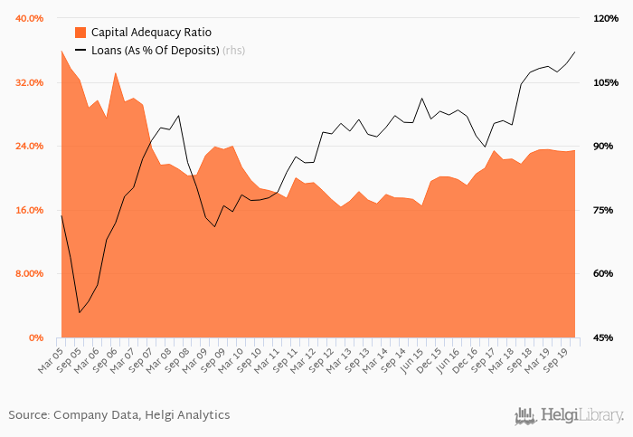 Bank's loan to deposit ratio reached 112% at the end of 4Q2019, up from 108% when compared to the same period of last year. Some 10 years ago, loan to deposit ratio of the bank amounted to 74.5%.