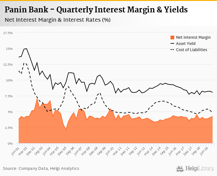 Panin Bank's net interest margin amounted to 4.25% in the fourth quarter of 2019, up from 4.04% when compared to the previous quarter.