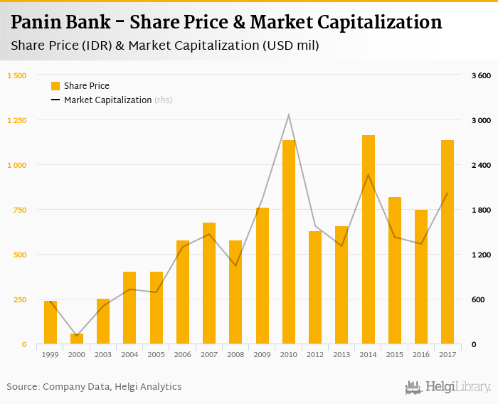 Panin Bank stock traded at IDR 1,140 per share at the end of 2017 implying a market capitalization of USD 2,021 mil.