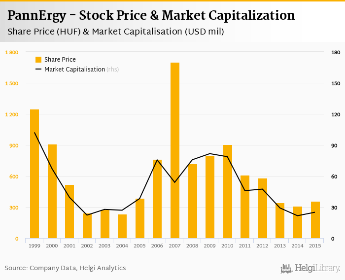 PannErgy stock traded at HUF 358 per share at the end 2015 implying a market capitalization of USD 25.0 mil.