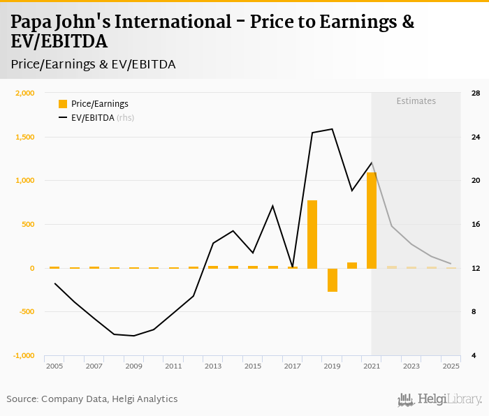 Papa John's International stock traded at USD 132 per share at the end 2021 translating into a market capitalization of USD 4,747 mil.