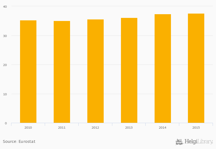 Part-time Employment Rate (Eurostat) rose 0.535% to 37.6% in Switzerland in 2015, according to Eurostat.