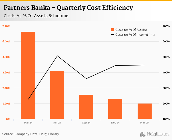 Partners Banka's cost to income ratio reached 447% in the first quarter of 2025, up from 444% when compared to the previous quarter.