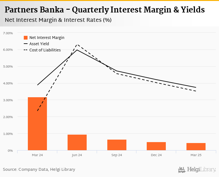 Partners Banka's net interest margin amounted to 0.446% in the first quarter of 2025, down from 0.508% when compared to the previous quarter.