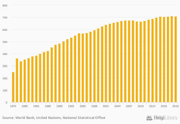 Passenger cars per 1,000 people fell 0.033% to 710 vehicles in Luxembourg in 2019, according to the National Statistical Office.
