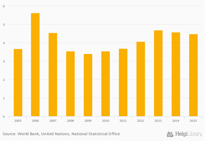 Passenger cars per 1,000 people fell 2.16% to 4.48 vehicles in Liberia in 2015, according to the National Statistical Office.