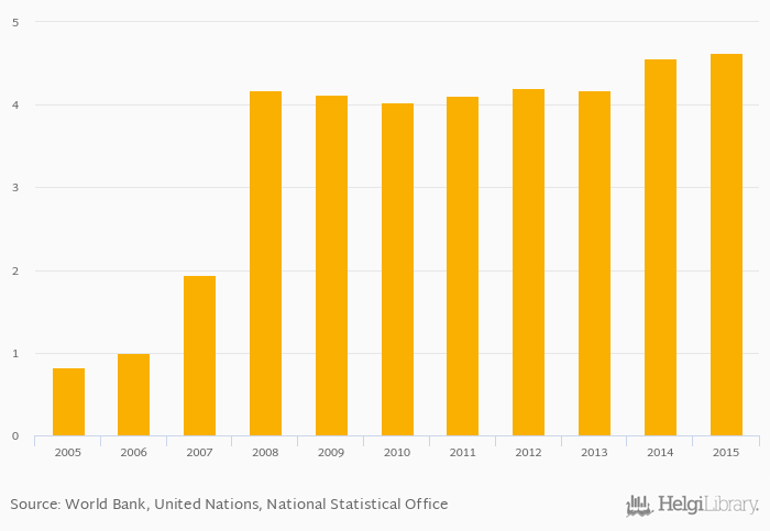 Passenger cars per 1,000 people rose 1.32% to 4.63 vehicles in Tanzania in 2015, according to the National Statistical Office.