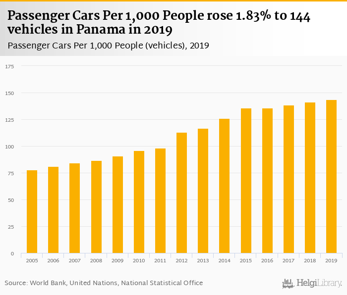 Passenger cars per 1,000 people rose 1.83% to 144 vehicles in Panama in 2019, according to the National Statistical Office.