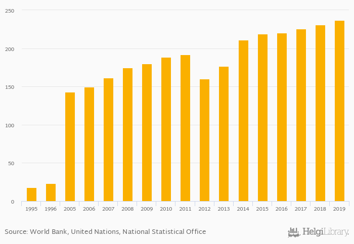 Historically, passenger cars per 1,000 people in Bosnia and Herzegovina reached an all time high of 237 vehicles in 2019 and an all time low of 17.6 vehicles in 1995.