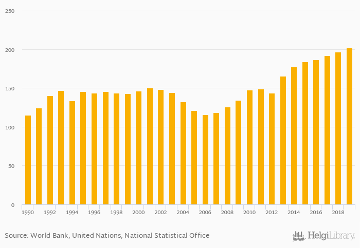 Passenger cars per 1,000 people rose 2.51% to 202 vehicles in Macedonia in 2019, according to the National Statistical Office.