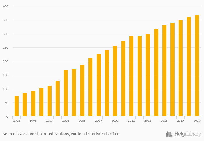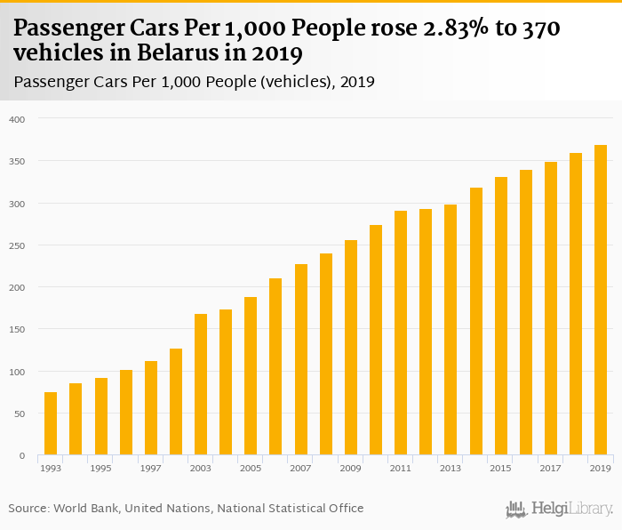 Passenger cars per 1,000 people rose 2.83% to 370 vehicles in Belarus in 2019, according to the National Statistical Office.