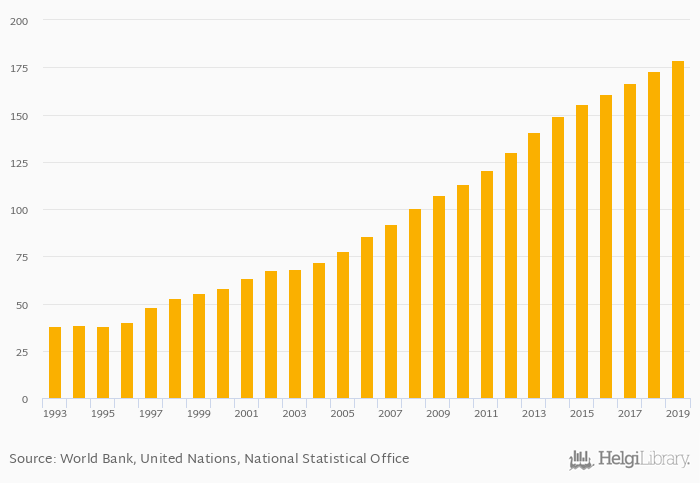 Passenger cars per 1,000 people rose 3.47% to 179 vehicles in Moldova in 2019, according to the National Statistical Office.