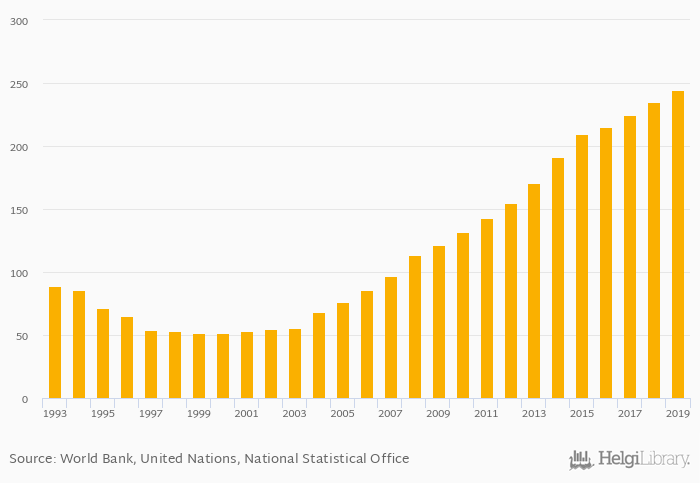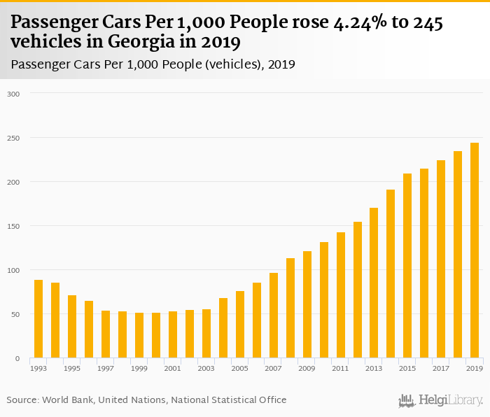 Passenger cars per 1,000 people rose 4.24% to 245 vehicles in Georgia in 2019, according to the National Statistical Office.