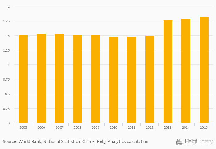 Passenger cars per household rose 1.79% to 1.82 vehicles in New Zealand in 2015, according to the National Statistical Office.