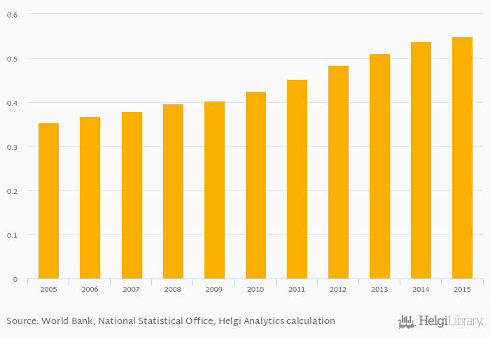 Historically, passenger cars per household in Chile reached an all time high of 0.550 vehicles in 2015 and an all time low of 0.354 vehicles in 2005.