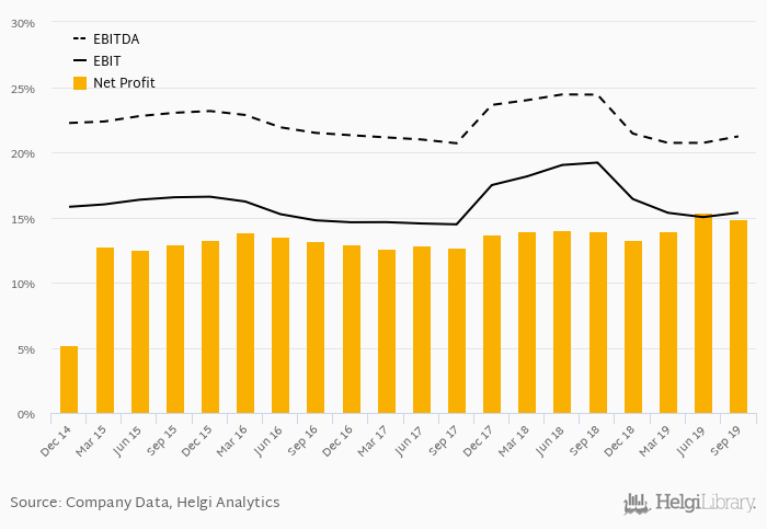 On the operating level, the EBITDA margin reached 21.2% and EBIT amounted to 15.4% of sales in 3Q2019.