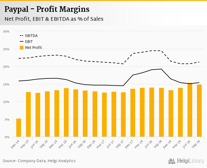 Paypal made a net profit of USD 462 mil with revenues of USD 4,378 mil in 3Q2019, up by 5.96% and up by 18.9%, respectively, compared to the previous year.