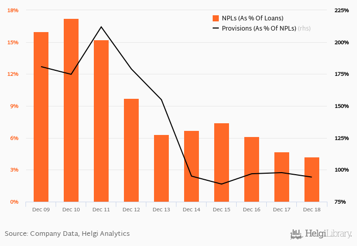 Provision coverage amounted to 94.3% at the end of 2018-12-31, down from 97.8% compared to a year earlier.
