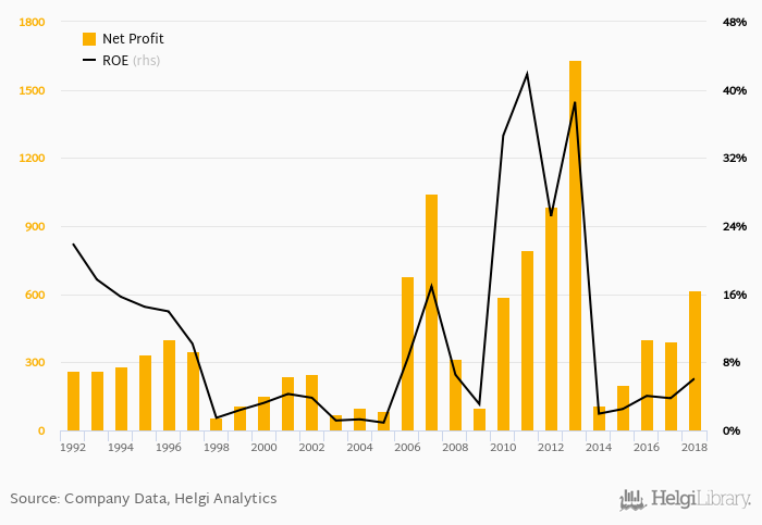 The bank generated its shareholders an average return on equity of 3.68% in the last five years with maximum at 6.10% and minimum at 1.97%