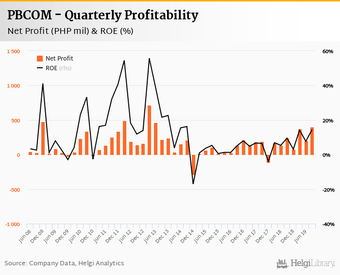 PBCOM made a net profit of PHP 399 mil in the third quarter of 2019, up 66.9% when compared to the same period of last year. This implies a return on equity of 14.5%.