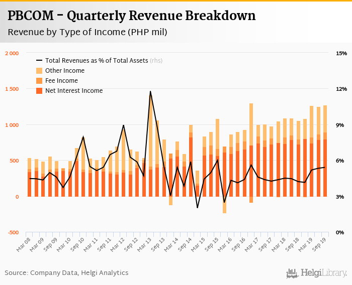 PBCOM generated total banking revenues of PHP 1,274 mil in the third quarter of 2019, up 21% when compared to the same period of last year and 2.09% when compared to the previous quarter.