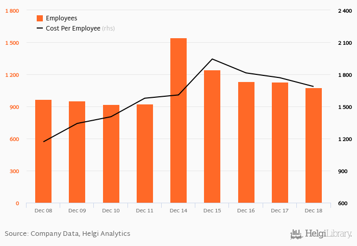 Staff accounted for 42.0% of total operating expenditures in 2018-12-31. The bank operated a network of 89.0 branches in 2018-12-31.