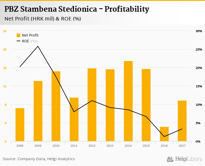 PBZ Stambena Stedionica made a net profit of HRK 8.89 mil in 2017, up 179% compared to the previous year. This implies a return on equity of 3.34%.