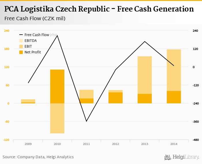 PCA Logistika Czech Republic made a net profit of CZK 41.3 mil with revenues of CZK 25,514 mil in 2014, up by 31.7% and up by 35.3%, respectively, compared to the previous year. This translates into a net margin of 0.162%.
