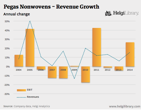 The data presented in the chart could be downloaded in the Companies section at www.helgilibrary.com/companies/index/pegas-nonwovens