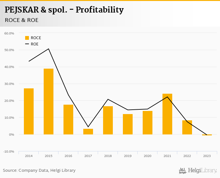 PEJSKAR & spol. made a net profit of CZK -1.19 mil in 2023, down 106% compared to the previous year. Historically, between 2014 and 2023, the company's net profit reached a high of CZK 50.7 mil in 2021 and a low of CZK -1.19 mil in 2023.