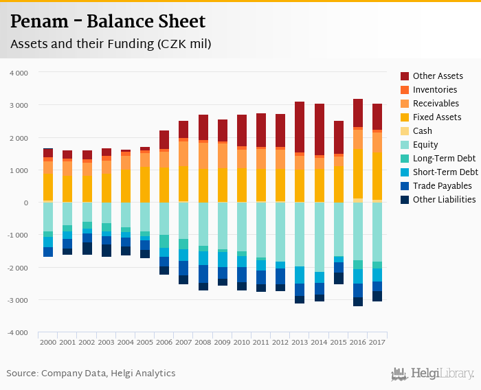 Penam's total assets reached CZK 3,051 mil at the end of 2017, down 4.34% compared to the previous year.
