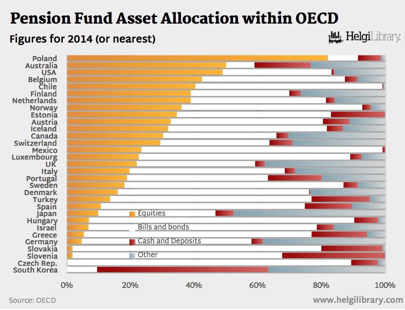 Pension funds’ assets exceeded USD 25 trillion in OECD countries in 2014. With the exception of Poland where assets fell more than 50% yoy, in all the OECD countries pension funds’ assets grew in 2014.