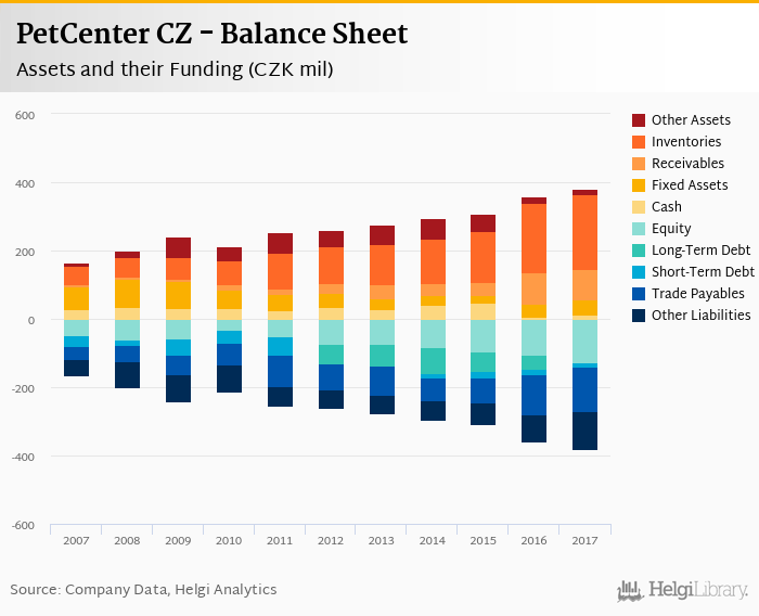 PetCenter CZ's total assets reached CZK 381 mil at the end of 2017, up 6.33% compared to the previous year.