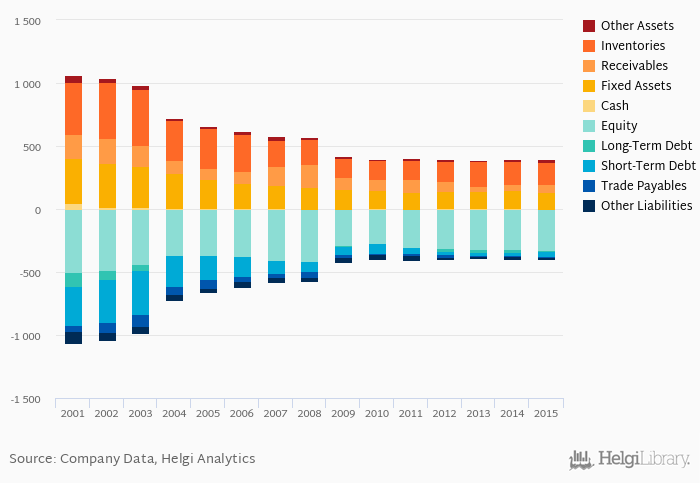 Net debt against equity is down 0.126 pp from five years ago (0.251). The ratio against EBITDA decreased from 4.21x seen in 2010 to 2.16x.