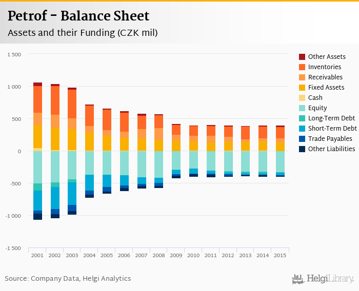 By contrast, total debt reached CZK 41.9 mil at the year-end, or 10.5% of total assets, while the firm's equity amounted to CZK 328 mil. As a result, net debt stood at CZK 40.9 mil at the end of 2015 and accounted for 0.125 of equity.
