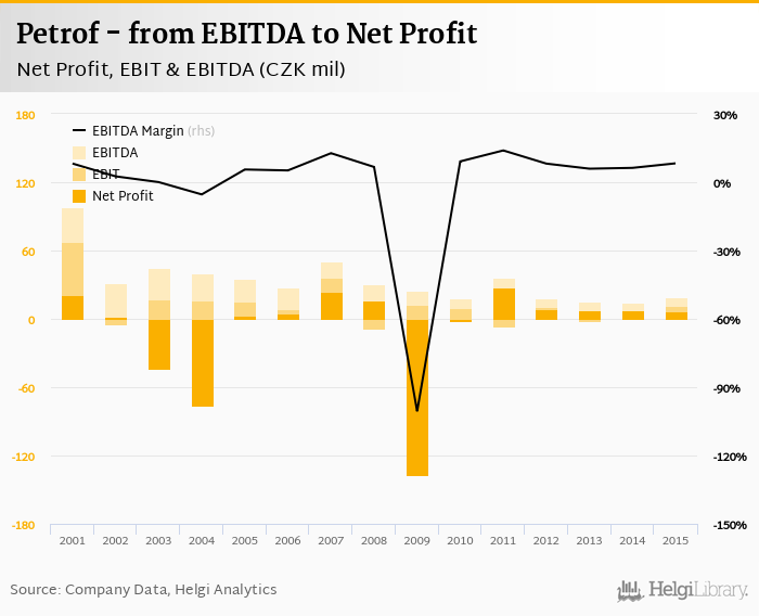 Historically, between 2001 - 2015, the firm’s net profit reached a high of CZK 27.6 mil in 2011 and a low of CZK -137 mil in 2009. Since 2010, the firm's net profit has increased 392% or nan% a year on average.