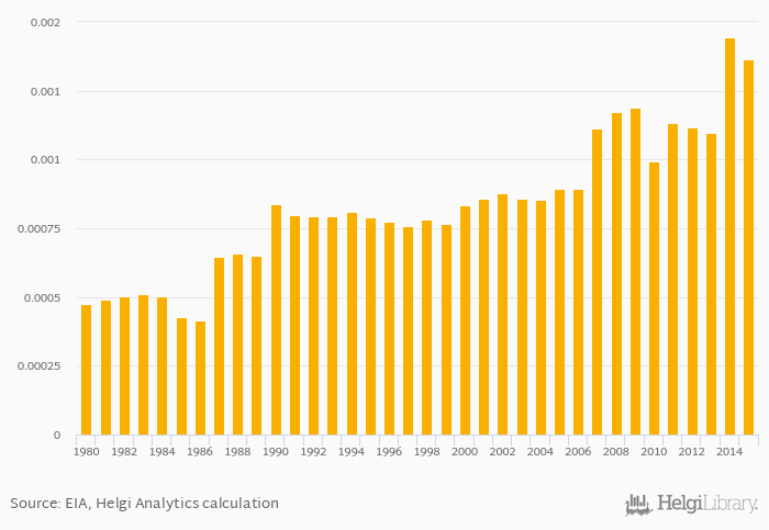 Petroleum consumption as a share of worldwide consumption fell 5.48% to 0.001% in Comoros in 2015, according to EIA.