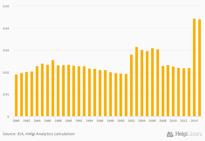 Petroleum consumption as a share of worldwide consumption fell 0.558% to 0.044% in Papua New Guinea in 2015, according to EIA.