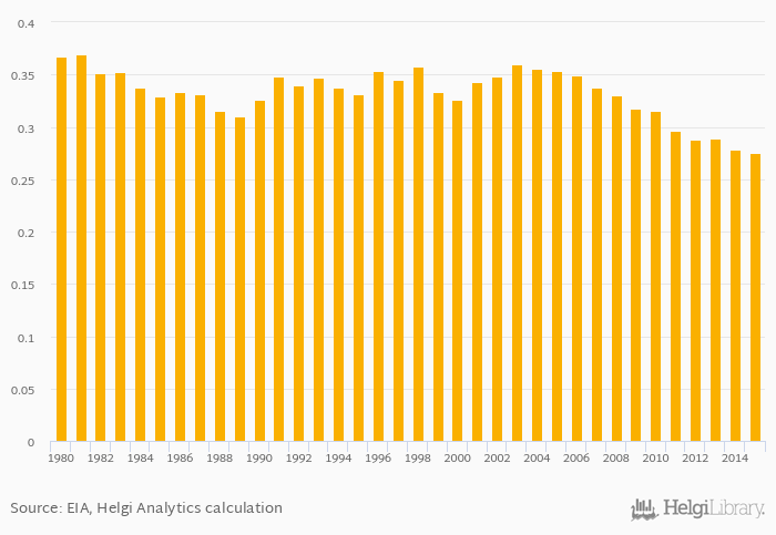 Petroleum consumption as a share of worldwide consumption fell 1.27% to 0.275% in Austria in 2015, according to EIA.
