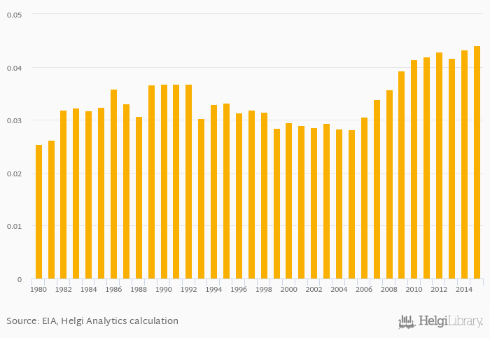 Petroleum consumption as a share of worldwide consumption rose 1.79% to 0.044% in Cameroon in 2015, according to EIA.