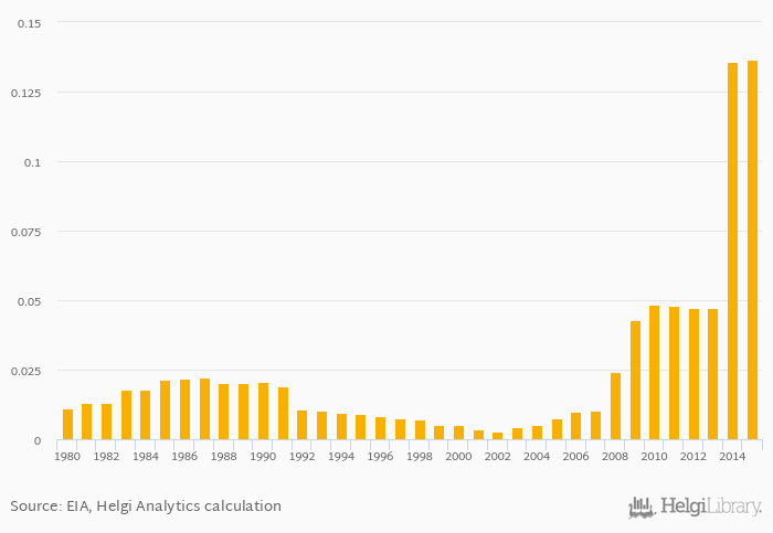 Petroleum consumption as a share of worldwide consumption rose 0.338% to 0.136% in Afghanistan in 2015, according to EIA.