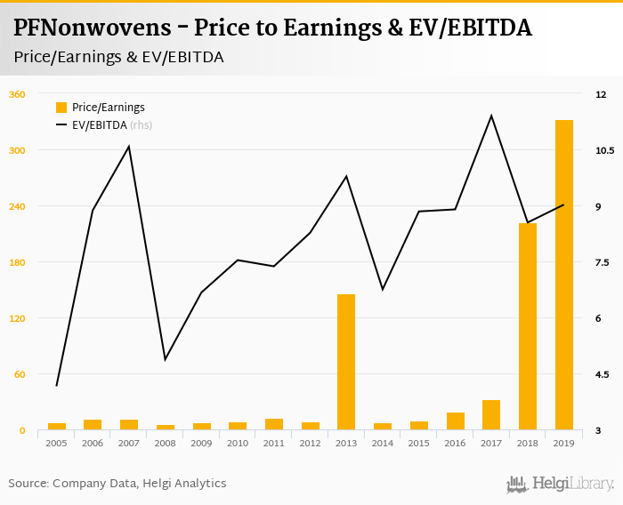 PFNonwovens stock traded at CZK 700 per share at the end 2019 translating into a market capitalization of USD 271 mil.