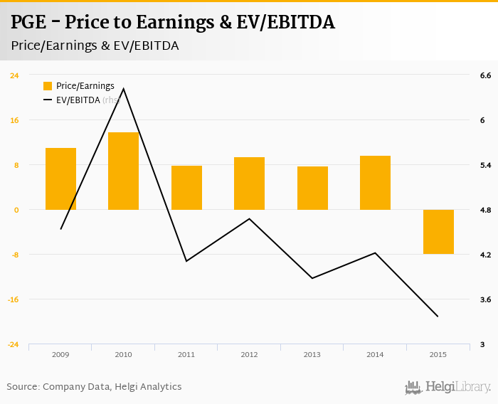 PGE stock traded at PLN 12.8 per share at the end 2015 translating into a market capitalization of USD 6,130 mil.