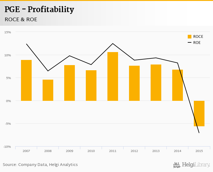 As far as PGE's peers are concerned, ENEA generated ROE of -3.60% and ROCE of -2.48% in 2015. Tauron Polska Energia's profitability reached -10.6% and -6.19%, respectively. CEZ operated with 7.71% and 4.01% returns in 2015.