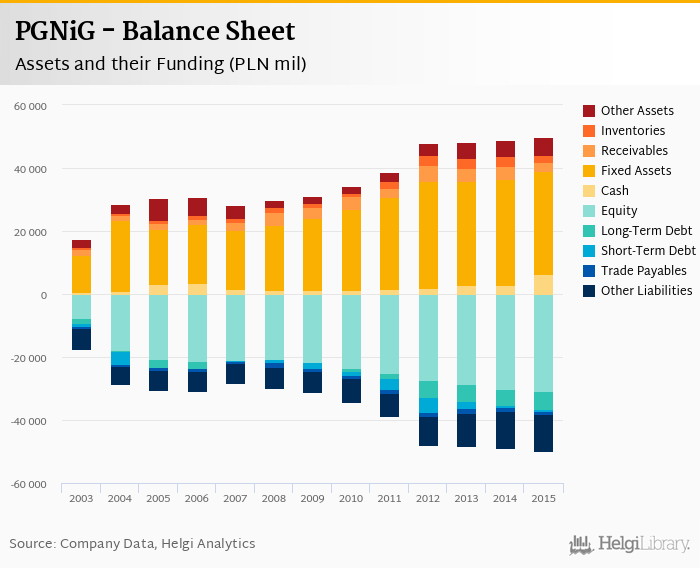 PGNiG's total assets reached PLN 49,825 mil at the end of 2015, up 1.84% compared to the previous year.