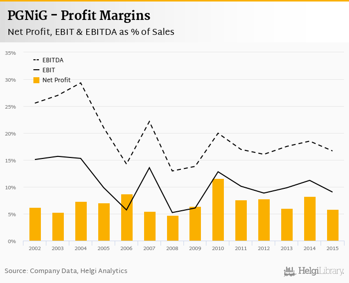 PGNiG made a net profit of PLN 2,134 mil with revenues of PLN 36,464 mil in 2015, down by 24.4% and up by 6.3%, respectively, compared to the previous year.