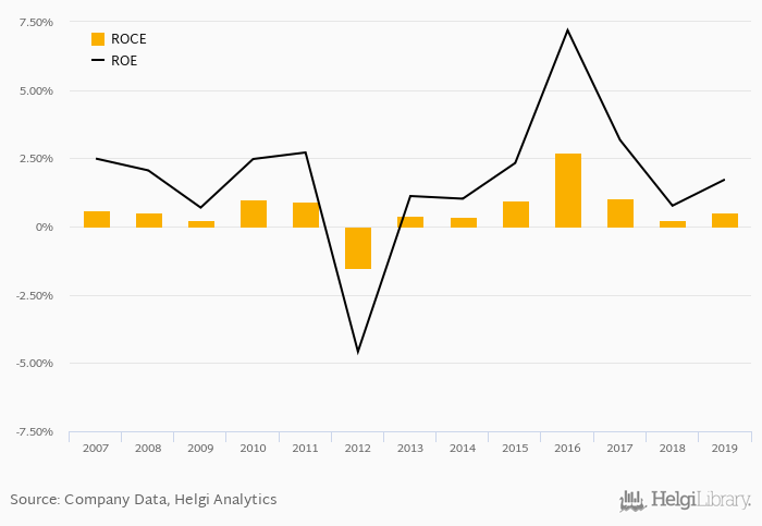 The result implies a return on equity of 1.72% and a return on invested capital of 0.527% in 2019. That is compared to an average of 3.03% and 1.10% over the last five years.