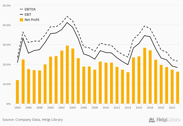 On the operating level, the EBITDA margin reached 21.6% and EBIT amounted to 18.3% of sales in 2023.